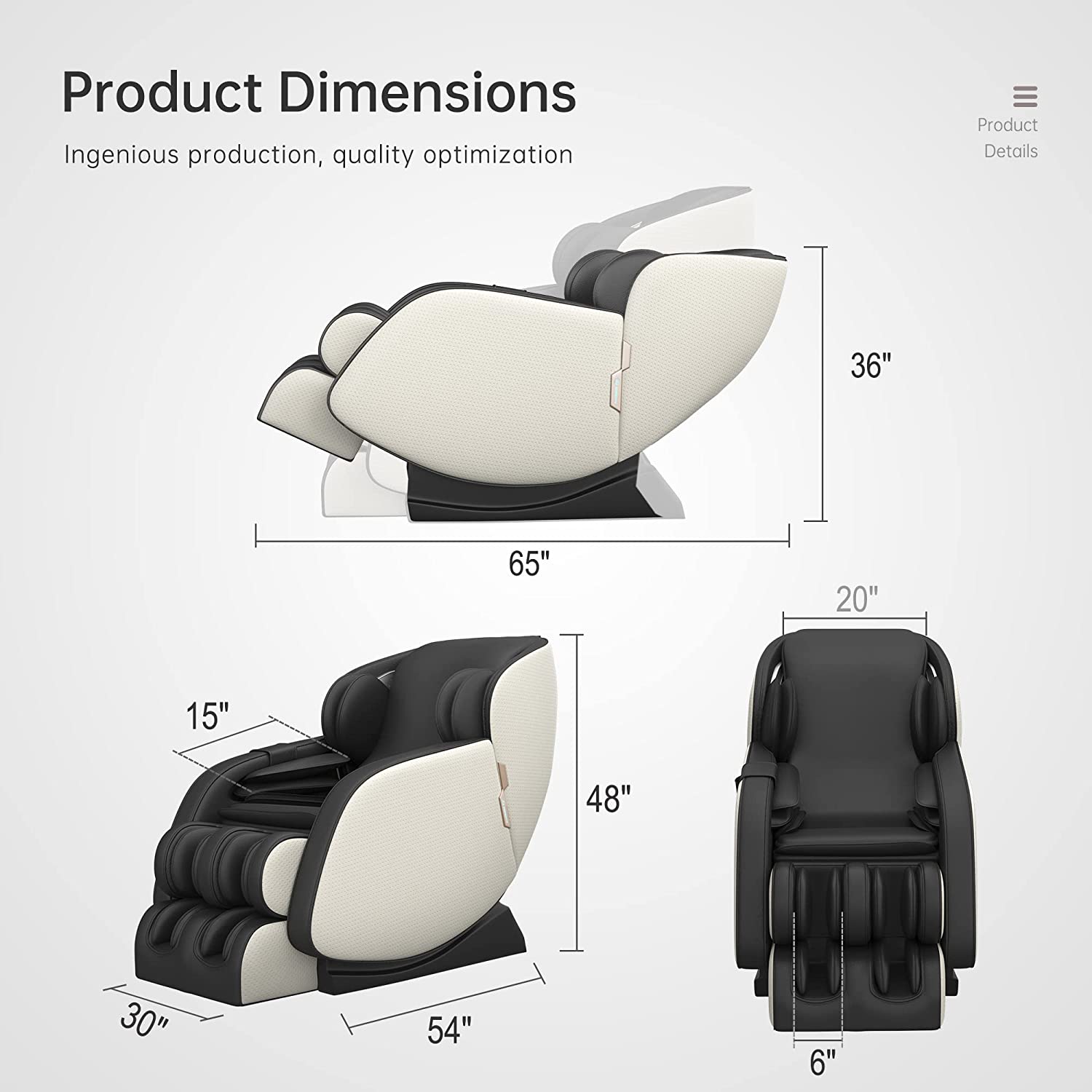 - Massage and airbag pressure is 3 intensity adjustable