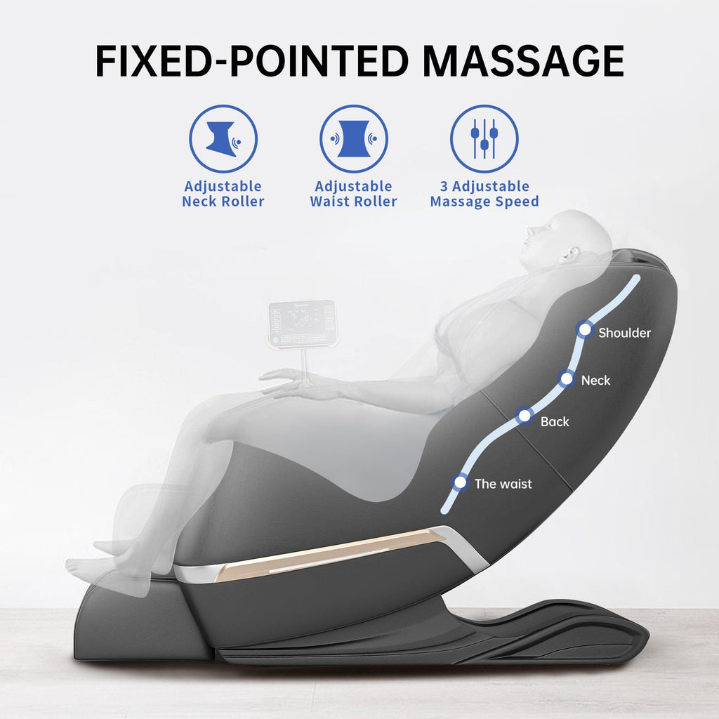 - Customize Massage: Use the remote to set rollers and airbags massage body parts, speed and strength (3 levels), adjust the back up and down.