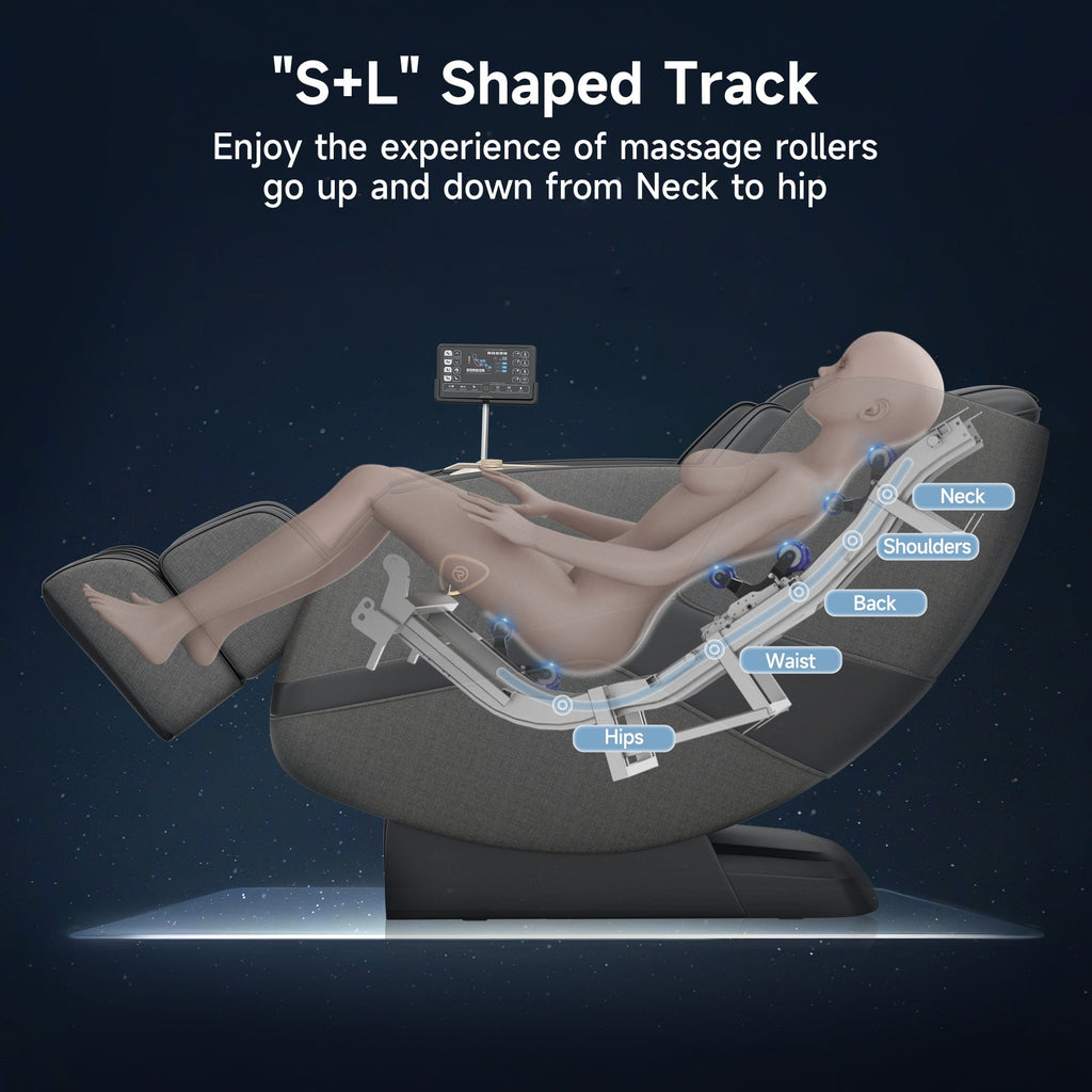 - ๐๐-๐๐ซ๐๐๐ค ๐๐๐ฌ๐ฌ๐๐ ๐ ๐๐ก๐๐ข๐ซ ๐๐จ๐ซ ๐ ๐ฎ๐ฅ๐ฅ ๐๐จ๐๐ฒ - The SL-Track in this massage chair glides smoothly from neck to hips, contouring to the body. Perfect for full-body or fixed-point sessions, this massager chair for full body ensures precise roller movements for tailored relief and ultimate relaxation