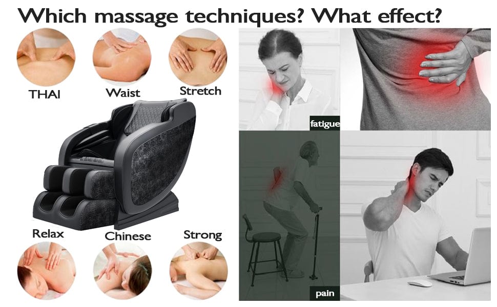 - Massaging airbag on the chair covers the shoulders, arms, hips and feet, and can also relieve chronic pain.