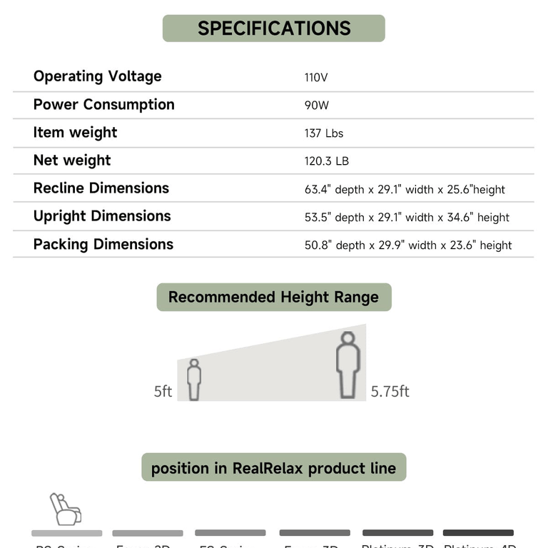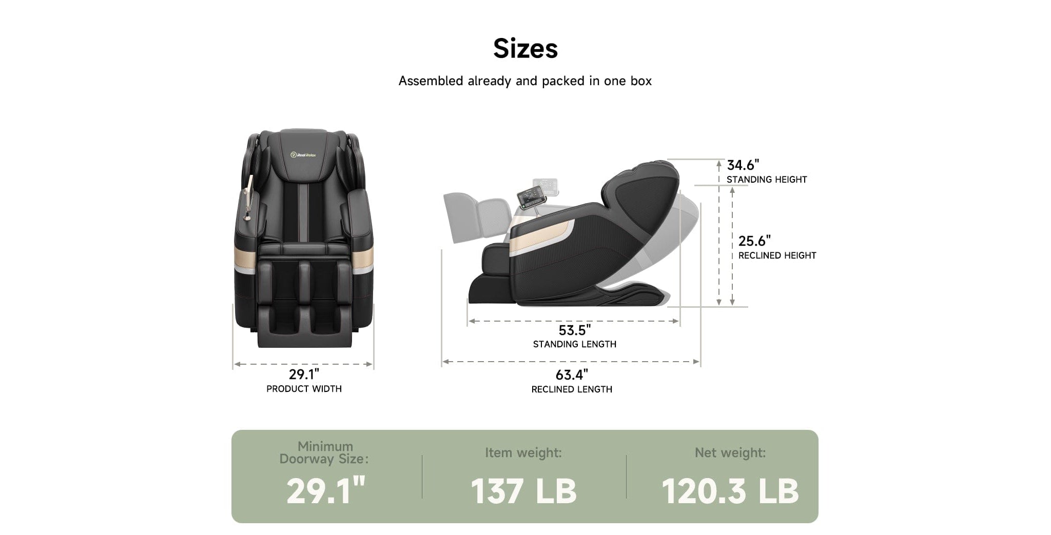 Recline Dimensions 63.4" depth*29.1" width*25.6" height