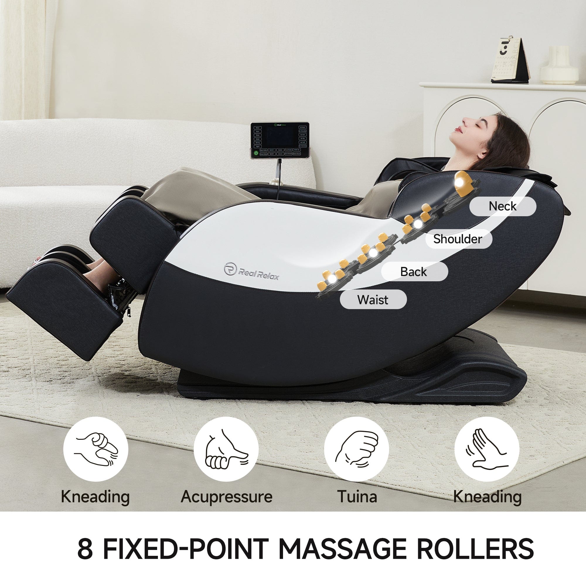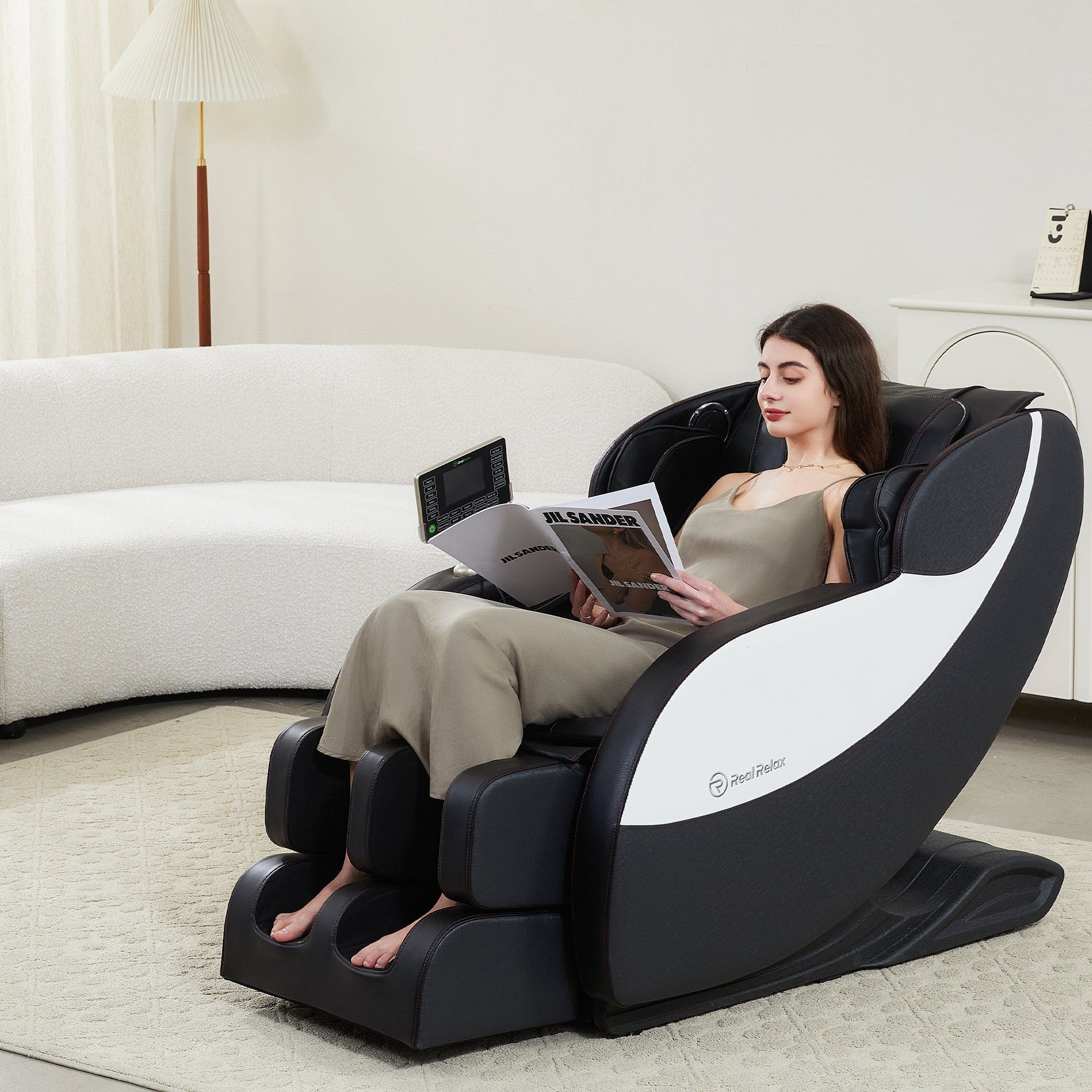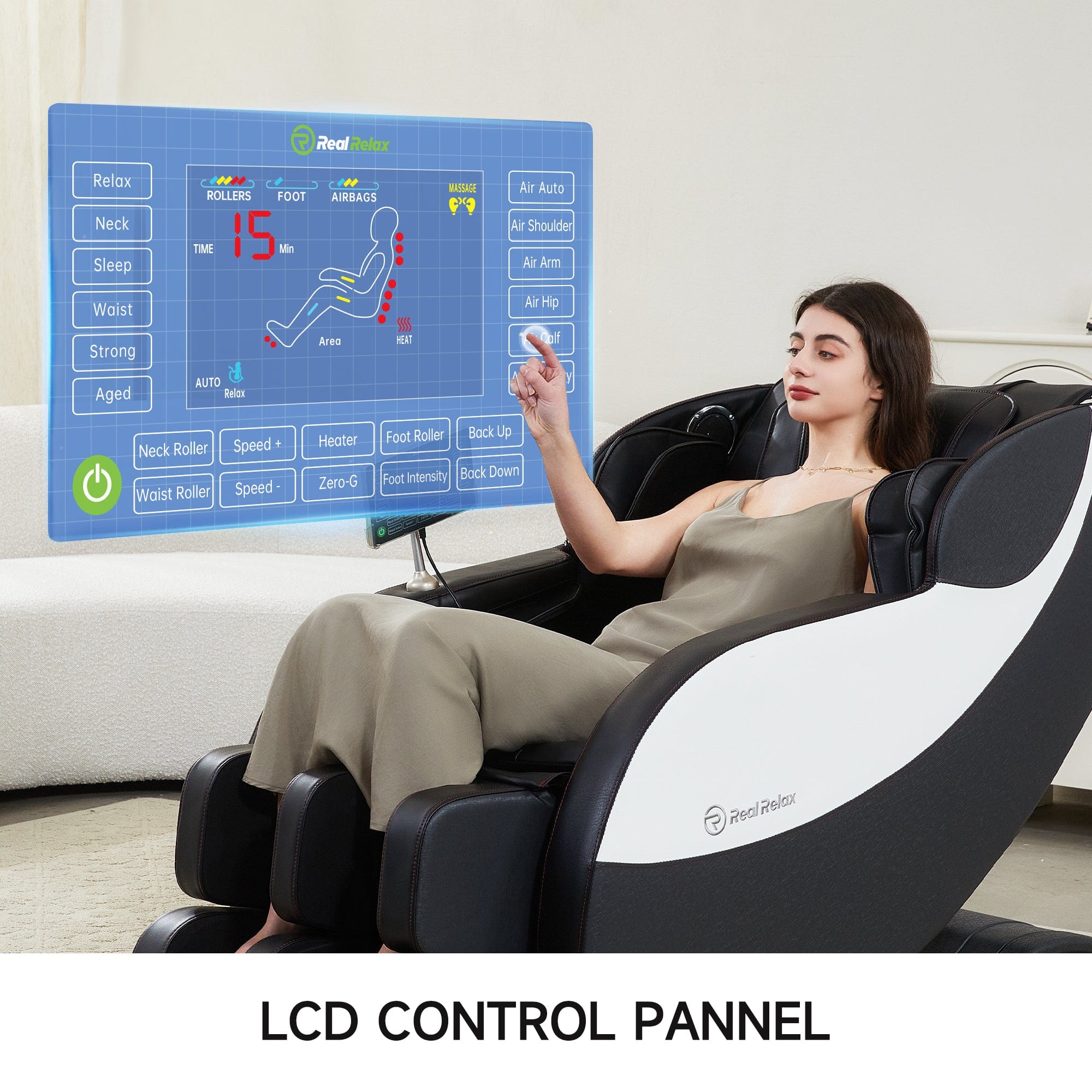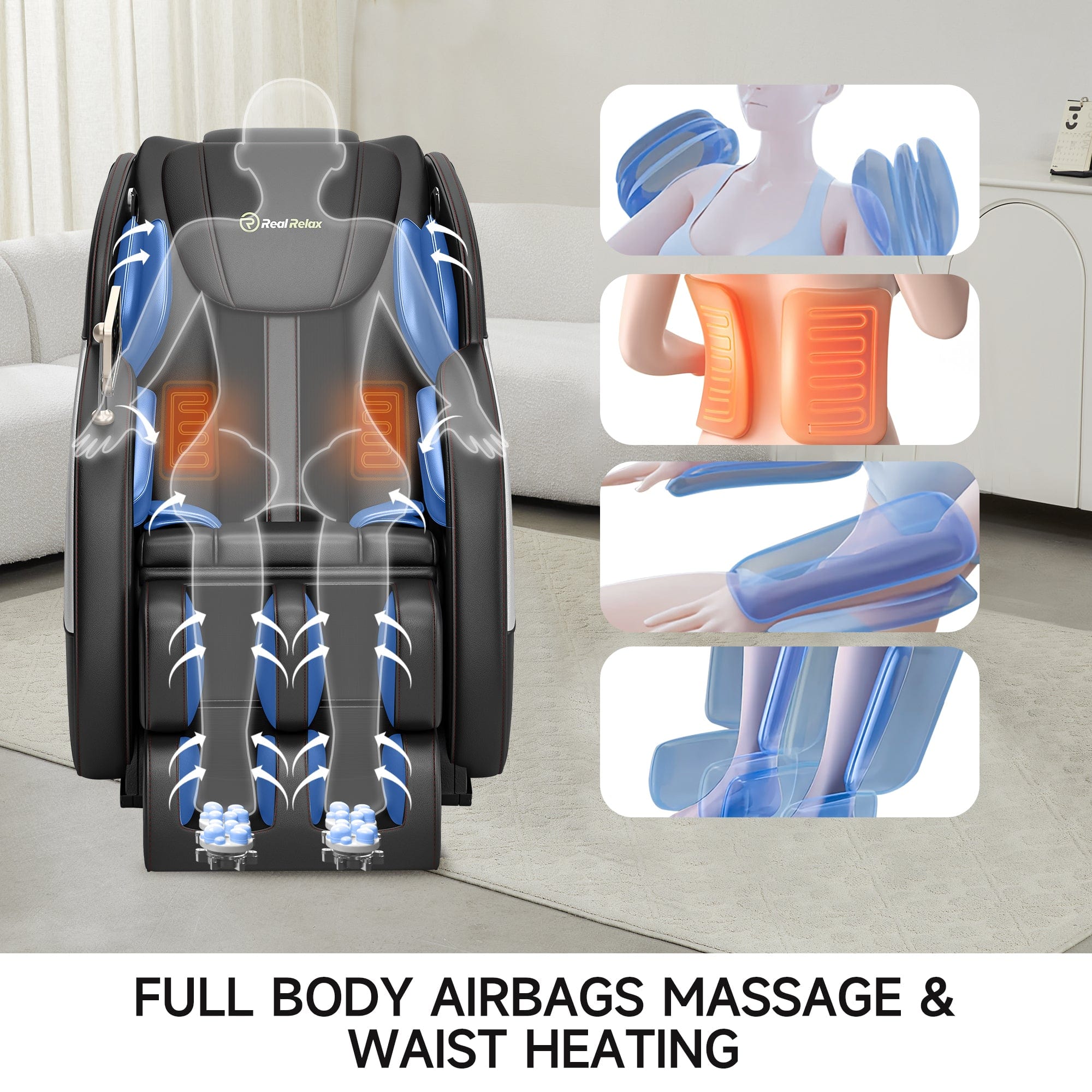 Real Relax massage chairs are equipped with full-body airbags that cover the shoulders, arms, buttocks, calves and feet, covering the entire body. Using specialized air pumps and multiple air valves, these airbags are controlled to inflate and deflate rhythmically. This full-body compression massage technique can effectively relax the body and reduce stress.