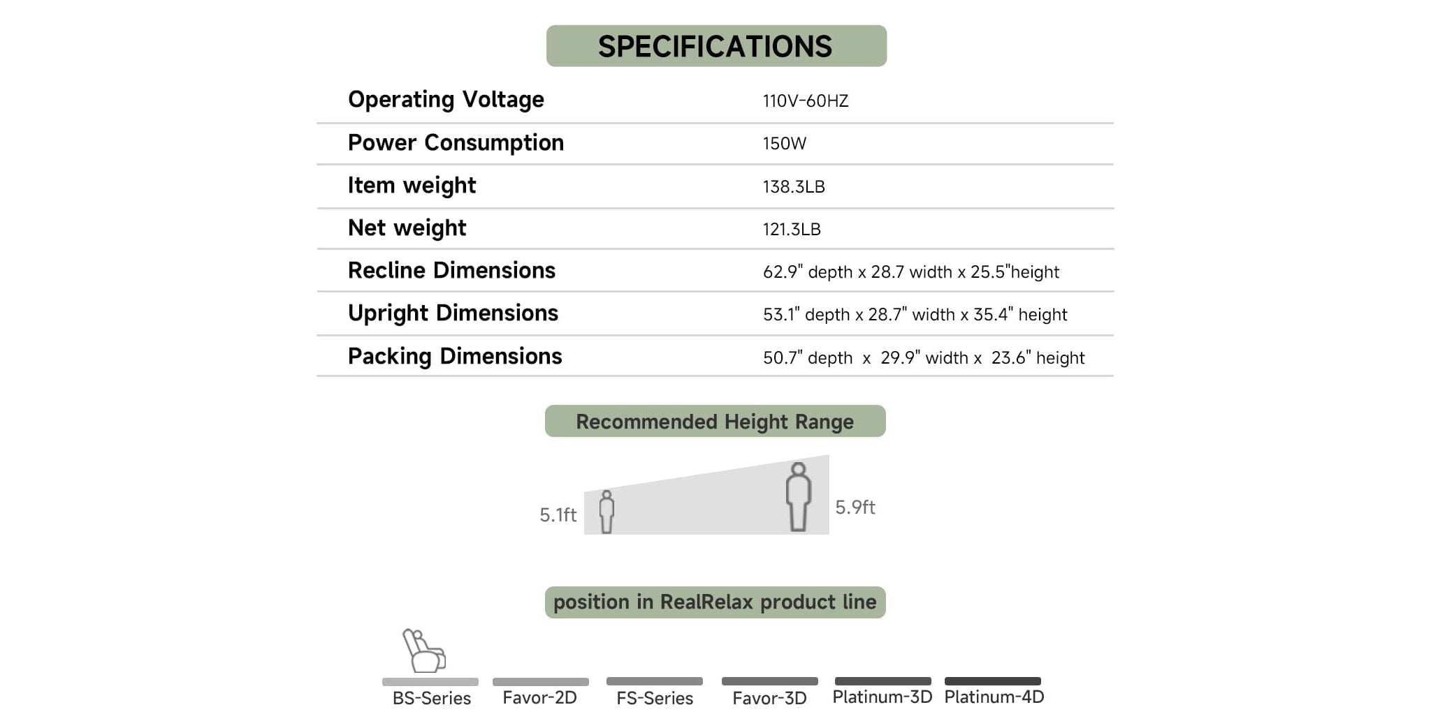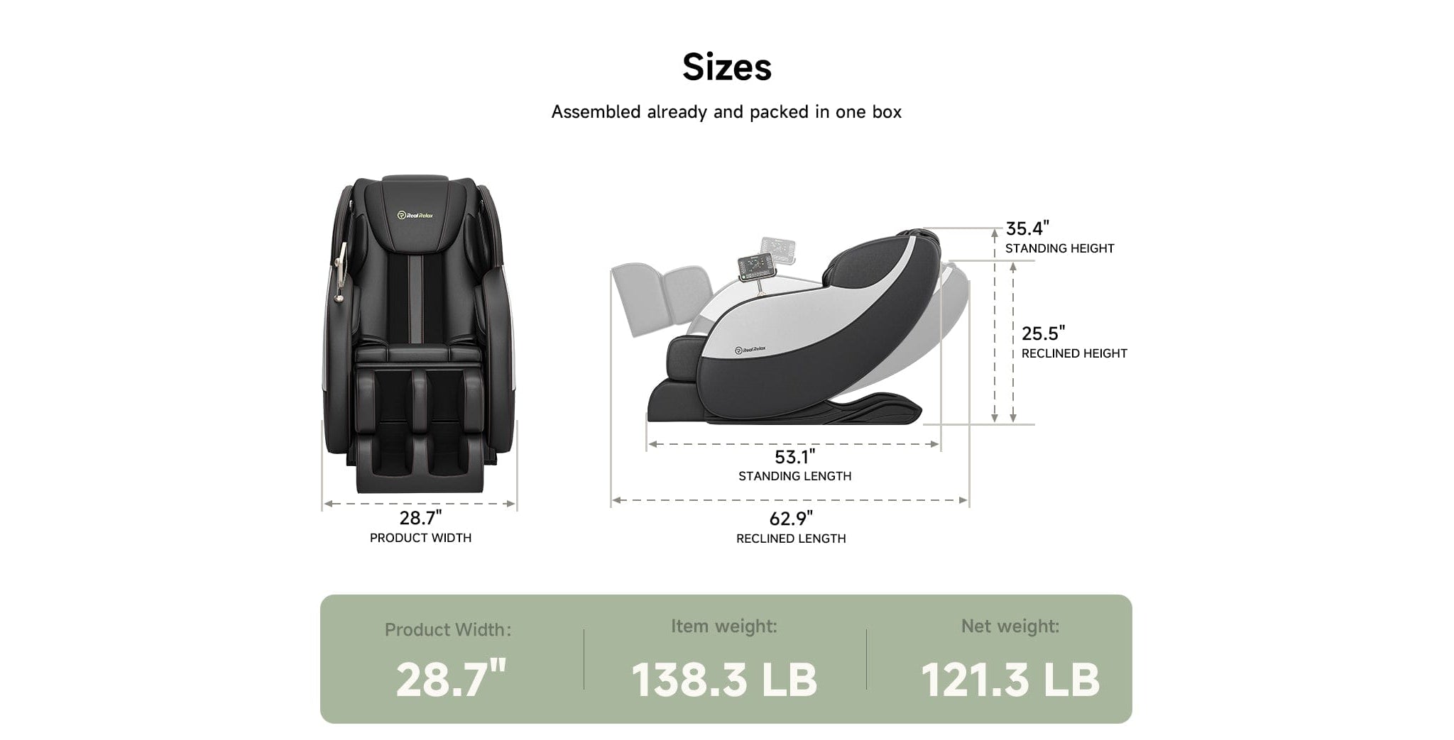 | Recline Dimensions | 62.9" depth*28.7" width*25.5" height |