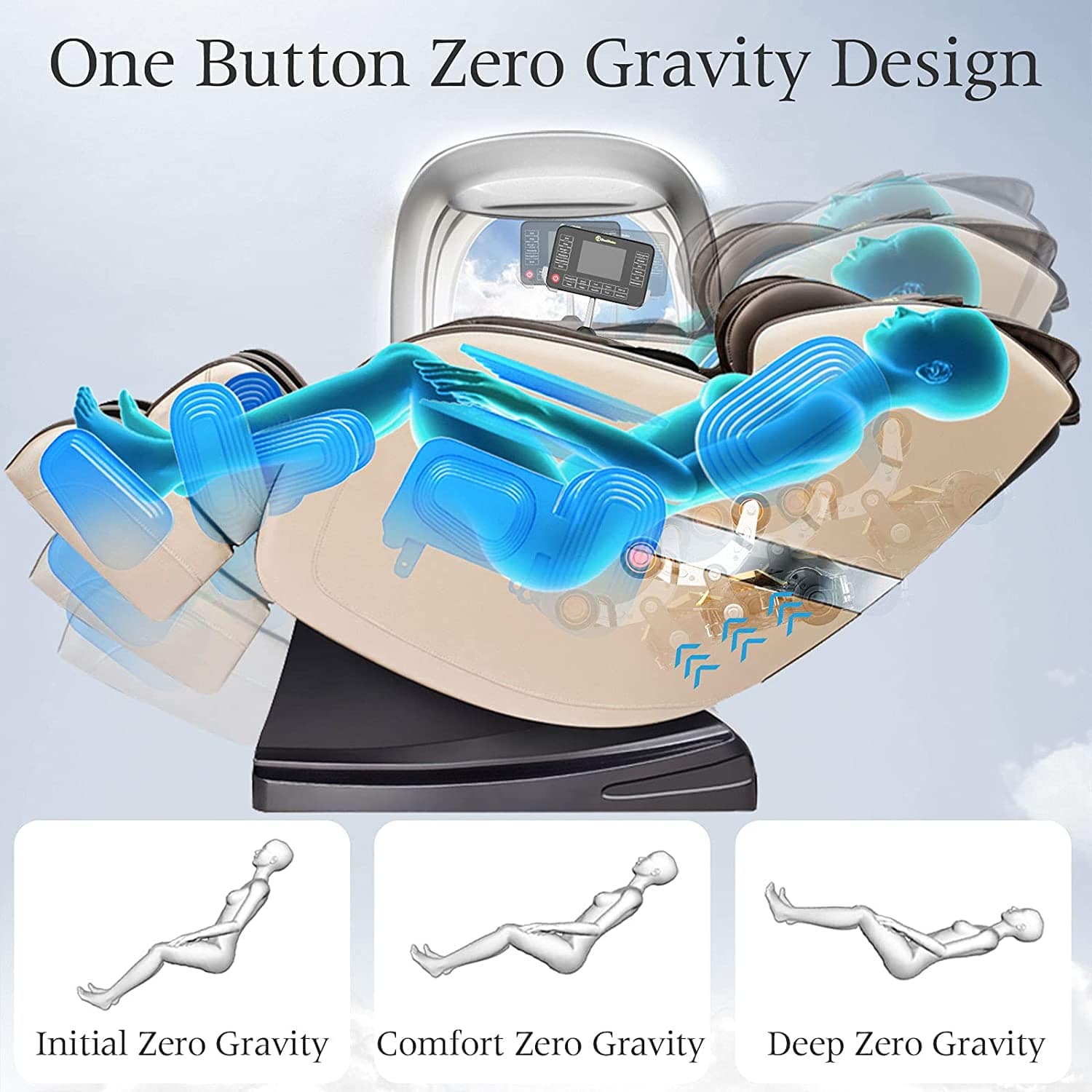 ergonomic design with the principles of zero-gravity and the comfort of a luxurious seat. By simulating the feeling of weightlessness, it allows users to experience a massage in a state of complete relaxation, free from external pressures.
