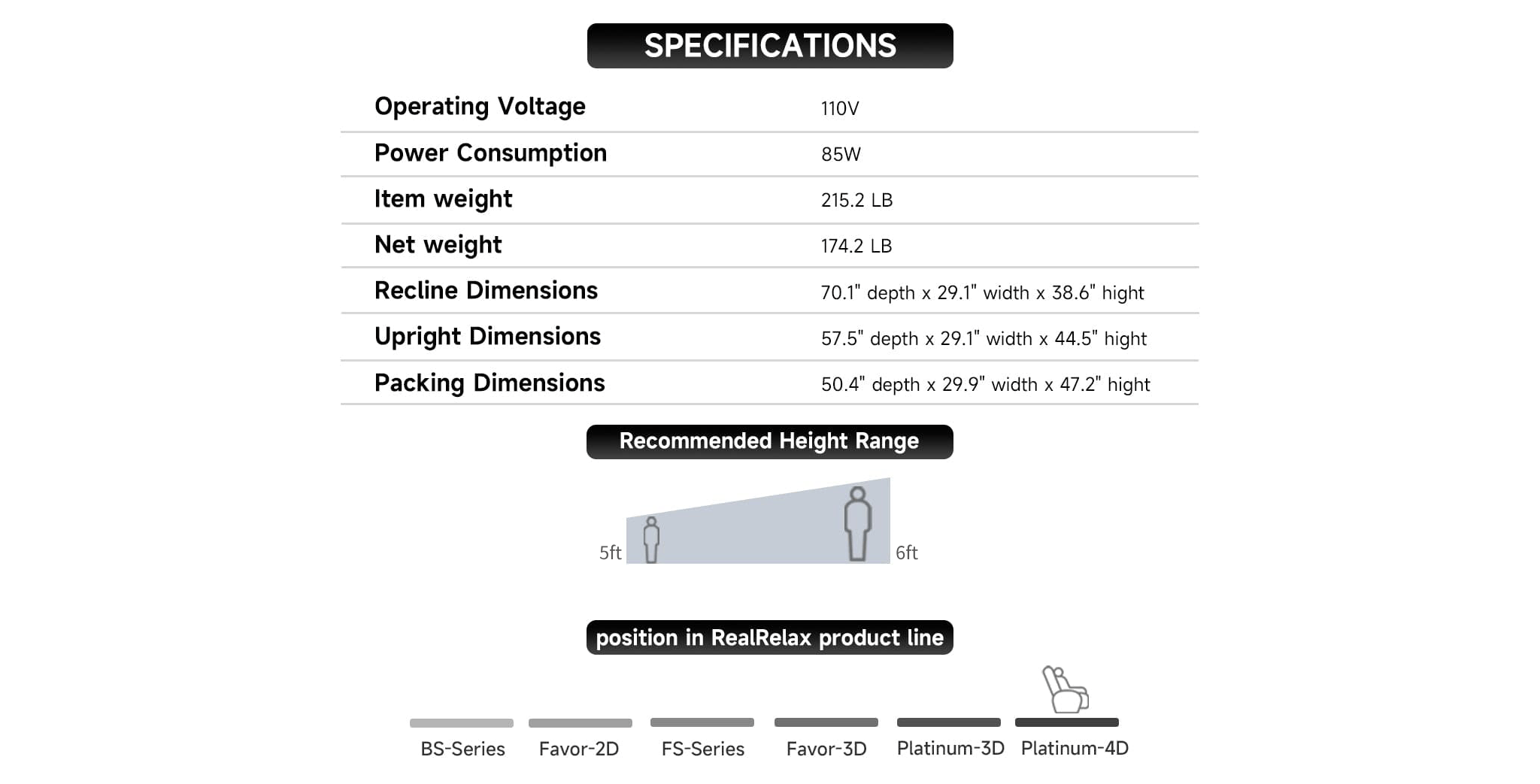 • A:It is suitable for users up to 180cm, with extendable footrest for adjustment.