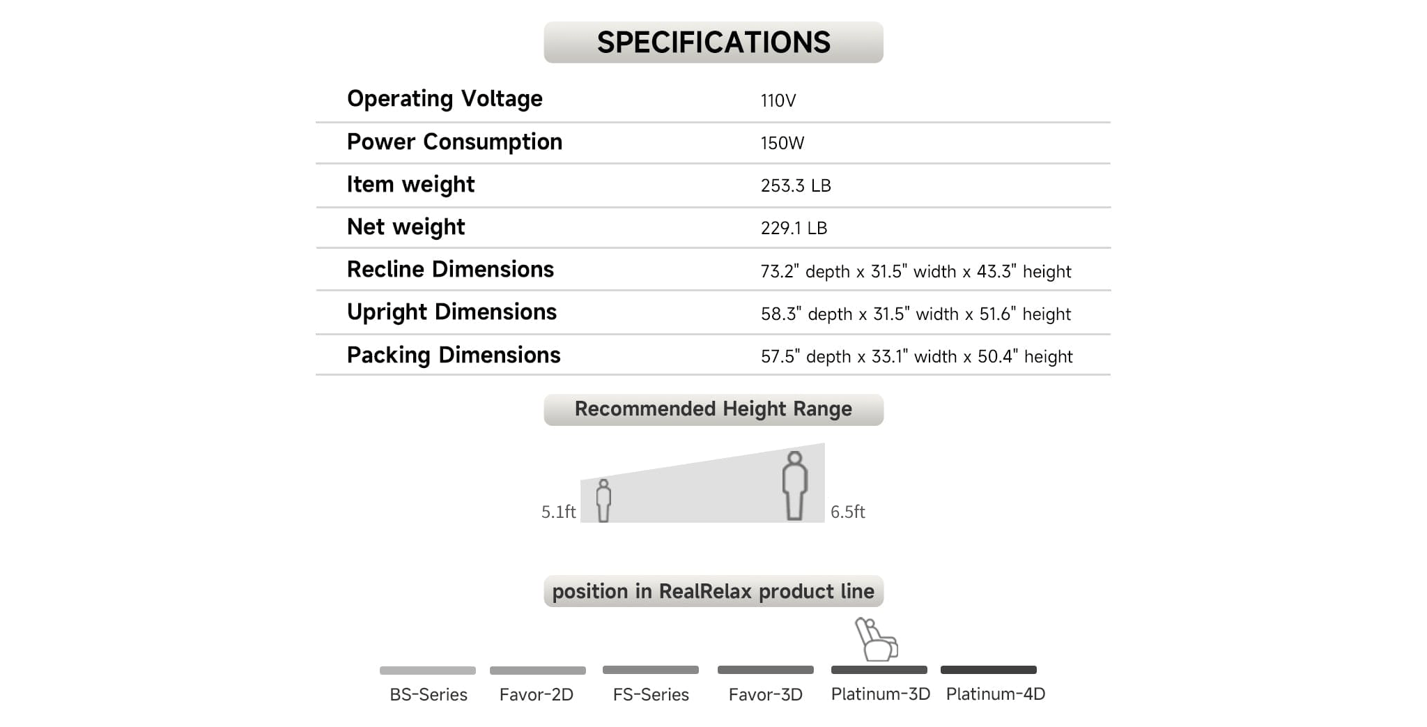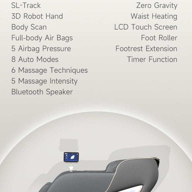 A:Equipped with an industry-leading 3D massage mechanism, it delivers a comprehensive, intelligent massage that eases tension in your shoulders, spine, lumbar region, and glutes. Its specially designed SL-Track follows your body's curves, providing a massage from neck to thighs.