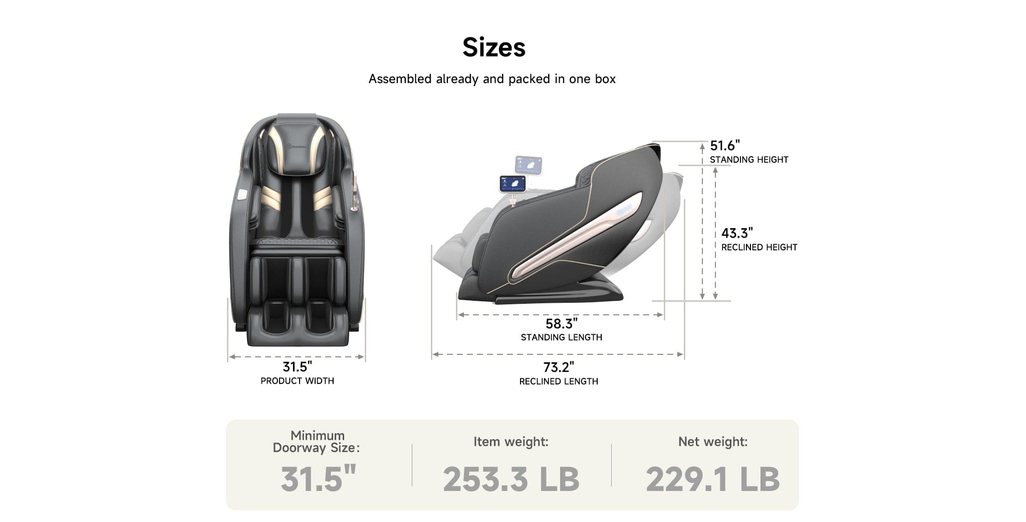 | Recline Dimensions | 73.2" depth*31.5" width*43.3" height |
